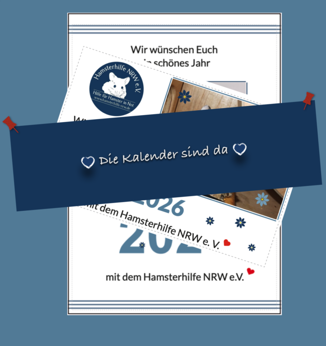 Ab sofort stehen unsere Kalender im Onlineshop des Hamsterhilfe NRW e.V. zum Kauf bereit. Wie immer haben wir einen Tisch- und einen Wandkalender für Euch entworfen. Lasst euch überraschen….