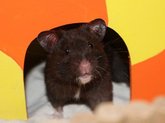 Wie so oft bei schwarzen Hamstern (und auch bei anderen Tieren) trägt Aquatas Fellfarbe wohl auch noch ihren Teil dazu bei, dass die Süsse schon so lange auf der Suche nach ihren eigenen Körnergebern ist. Leider hält sich nämlich der alte Aberglaube hartnäckig, dass Tiere mit schwarzem Fell aggressiver sind, manche behaupten sogar, sie bringen Unglück – was natürlich beides absoluter Humbug ist.