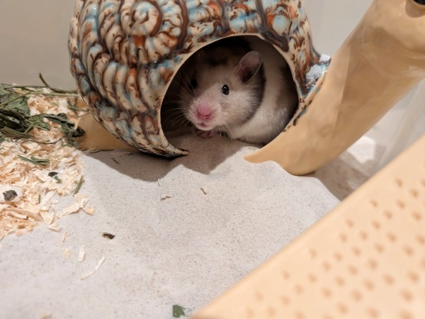 Der süße Gismo wurde von einer lieben Familie aus dem Bekanntenkreis übernommen, da er in einer Tierhandlung samt Minikäfig gekauft wurde und in diesem sein Leben drin verbringen sollte. Umso schöner, dass hier nicht wegeschaut wurde. So darf der noch junge Goldibub schon bald auf Eigenheim suche gehen.