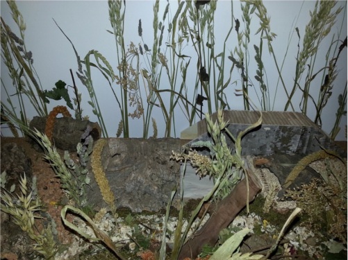 Im Einstreu (30cm durchgängig) buddelt sie nach wie vor wie eine kleine Weltmeisterin und bunkert, was das Zeug hält. Viele schöne Versteckmöglichkeiten sorgen für Abwechslung.